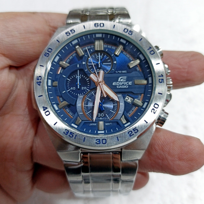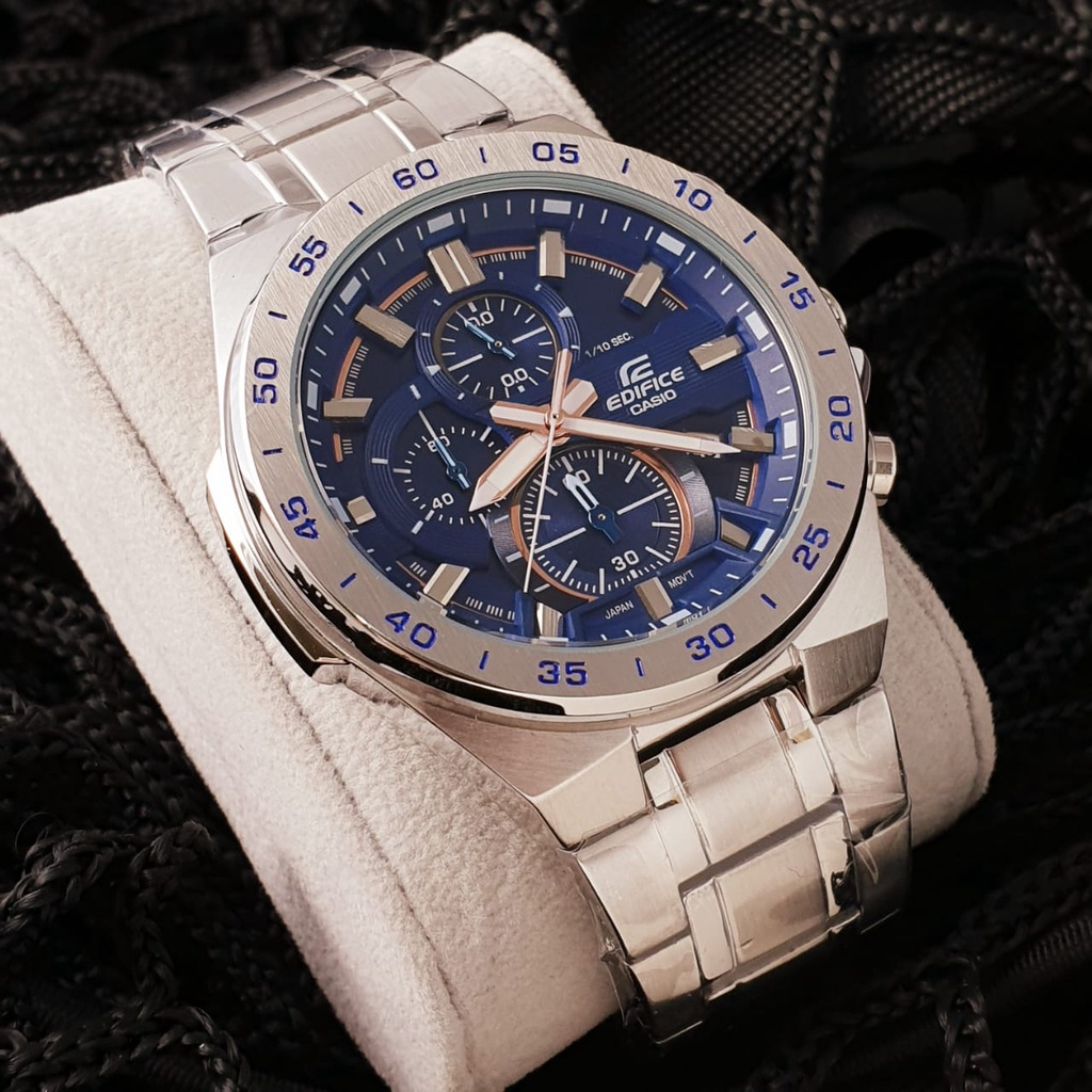 TERLARIS Jam Tangan Pria C*s*o ED*F*C* EFR-564D-2A EFR-564 Chronograph Navy Dial Silver Steel