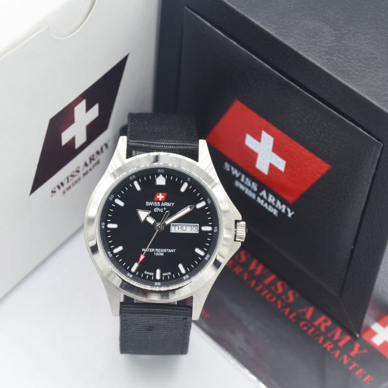 TERLARIS Jam Tangan Pria Swiss Dhc Original Army Hari Tanggal Aktif Bahan Stainless