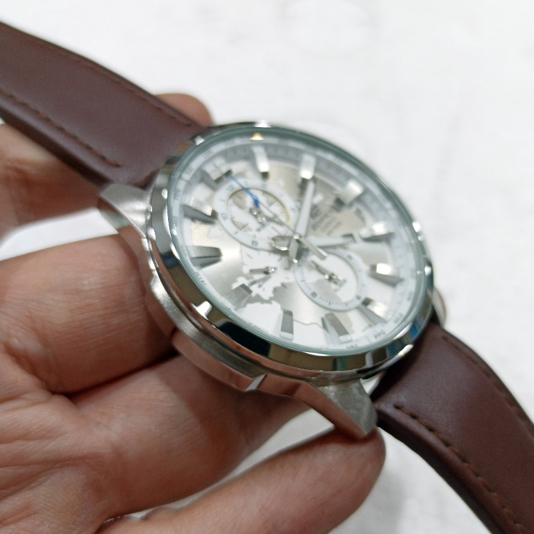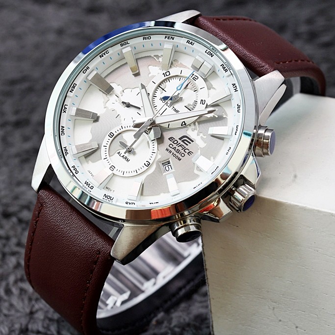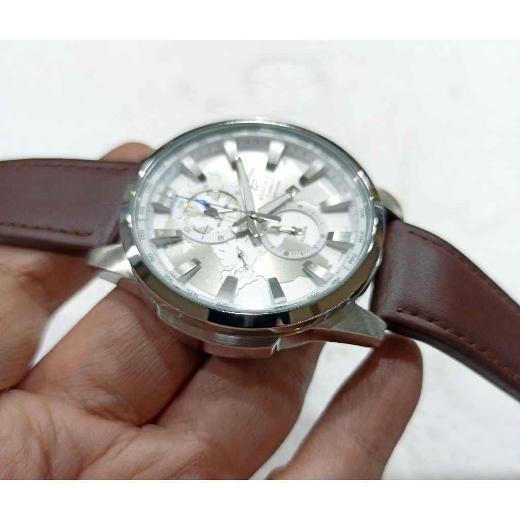 TERLARIS Jam Tangan Pria C*s*o ED*F*C* EFR-303L-7A EFR-303 White Dial Silver Brown Leather