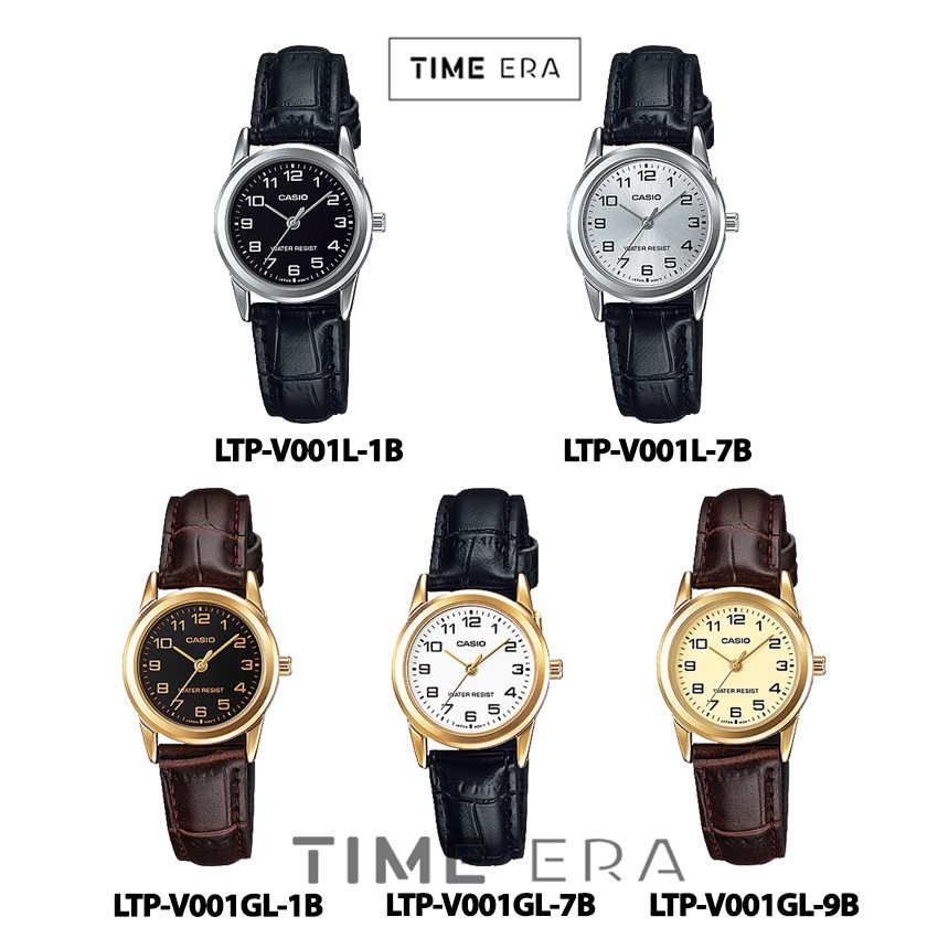 TERLARIS Casio General LTP-V001L-1B 7B / LTP-V001GL-1B 7B 9B Jam Tangan Kulit Wanita Silver