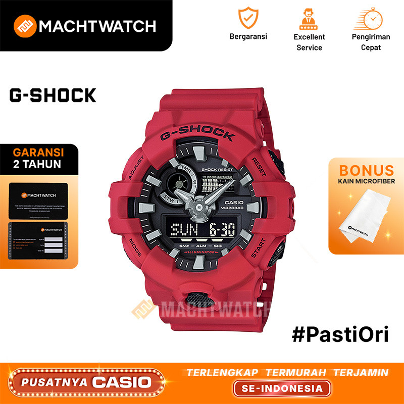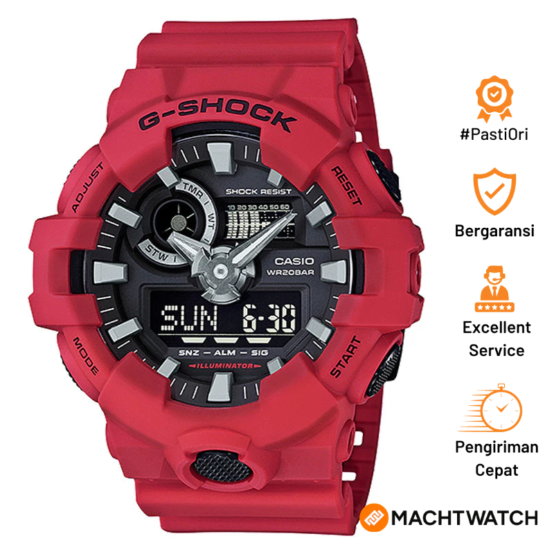 TERLARIS Jam Tangan Pria Analog Digital Casio G-Shock GA-700-4ADR Red Resin Band