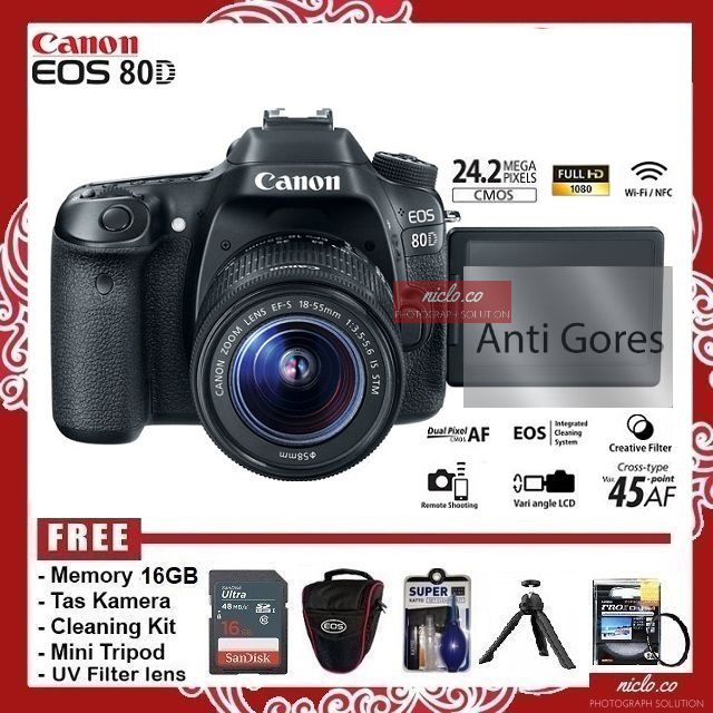 [NEW] KAMERA EOS CANON 80D + LENSA KIT 18-55mm IS STM WIFI - GARANSI 1 TAHUN -CAMERA DSLR 70D 5D 90D