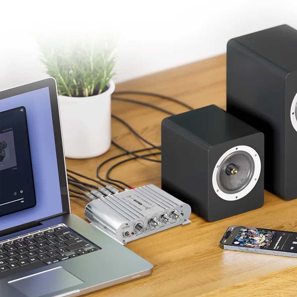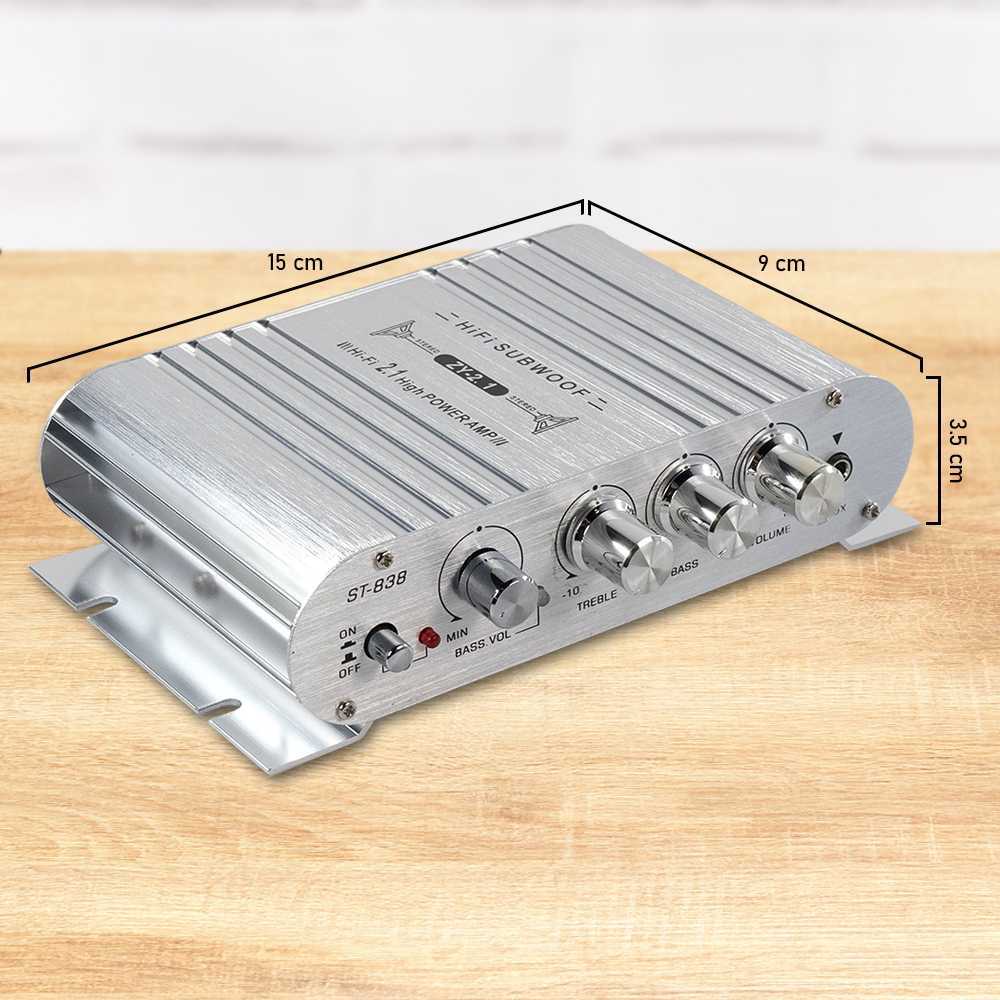 Cepat Power Mini Ampli Mobil HiFi Stereo Amplifier Treble Bass Booster DC 12-14V 3 Channel 20W x 2 + 40W - ST-838