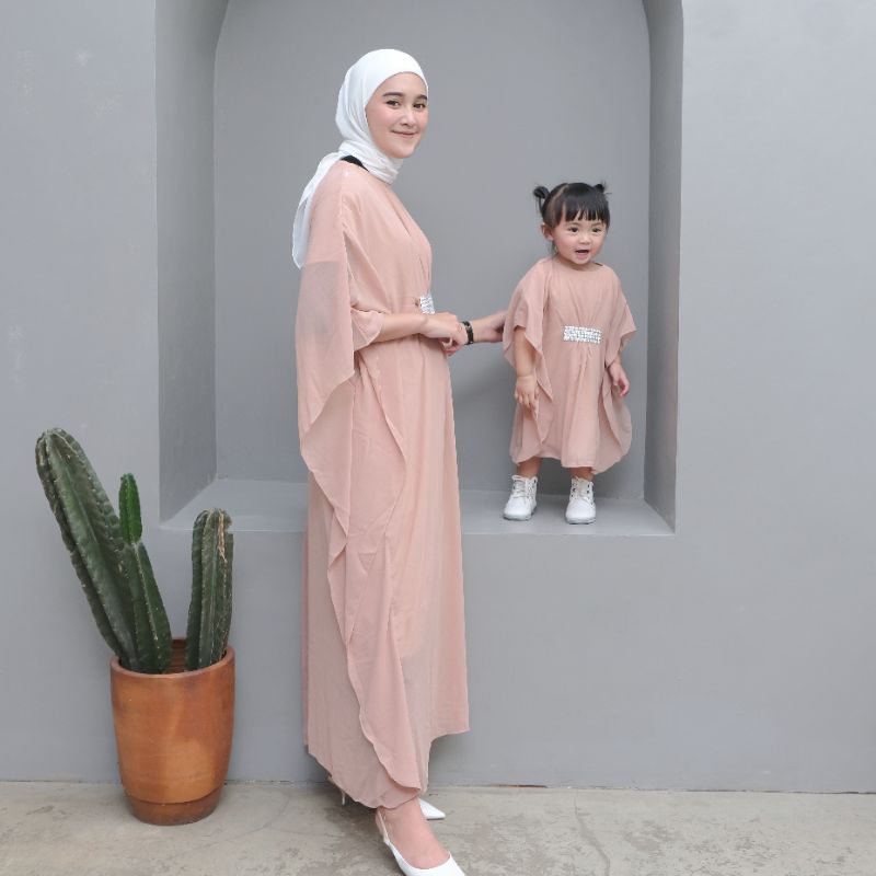 KAFTAN COUPLE BUSUI IBU DAN ANAK 0-2 TAHUN BAYI PEREMPUAN MEWAH PAKAIAN LEBARAN DUSTY COKSU PINK