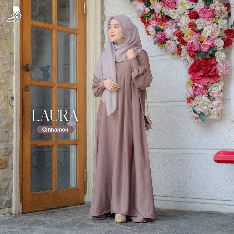 BERKAH SYAR'I | Laura Dress | XS - XXL | LD 90 - 120cm | Gamis Abaya Elegant Lengan Balon Baju Lebaran 2026 Terbaru