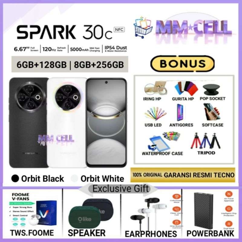 TECNO SPARK 30C NFC RAM 8/256 | SPARCK 30 C 6/128 GARANSI RESMI