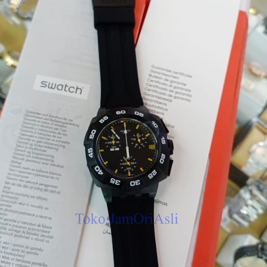 TERLARIS Promo Original Swatch CHRONO Jam Tangan Pria Strap Karet SUlB414D BLACK HERO Original