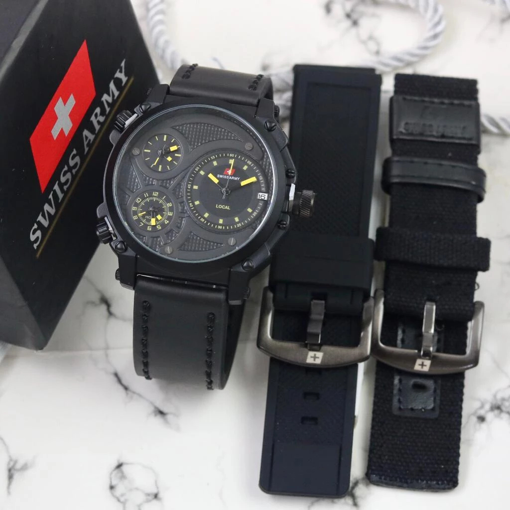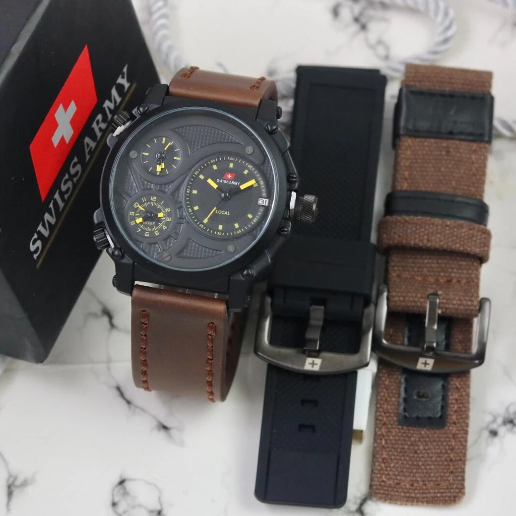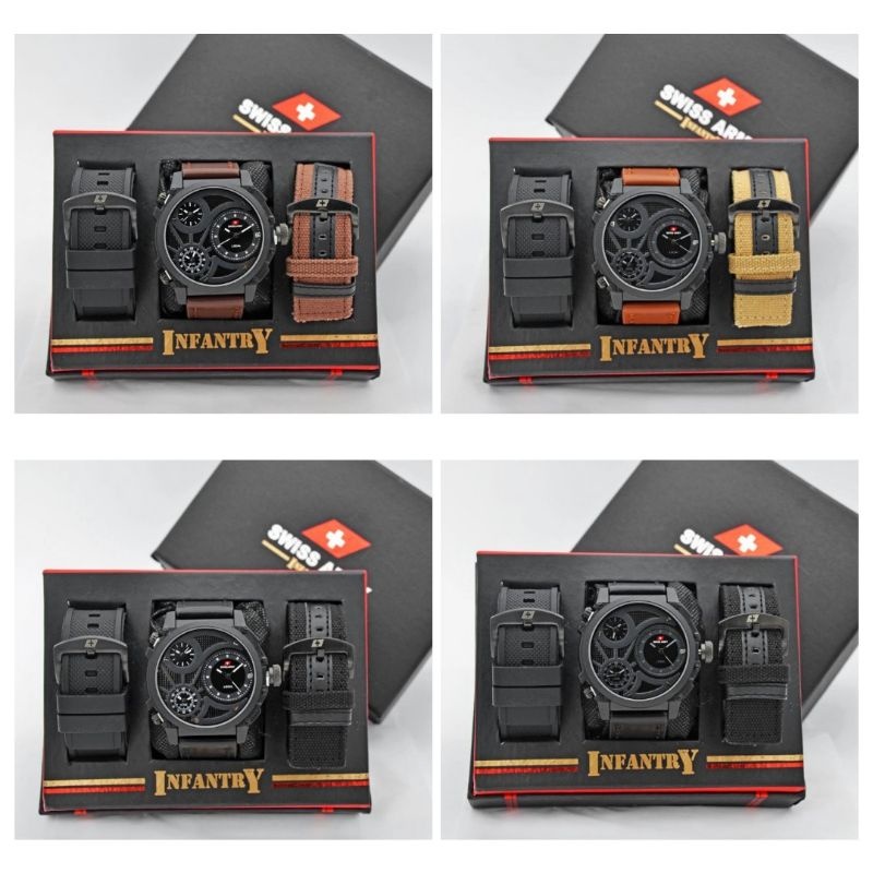 TERLARIS Jam Tangan Pria Swiss Infinity 3Time Kulit Set Paket