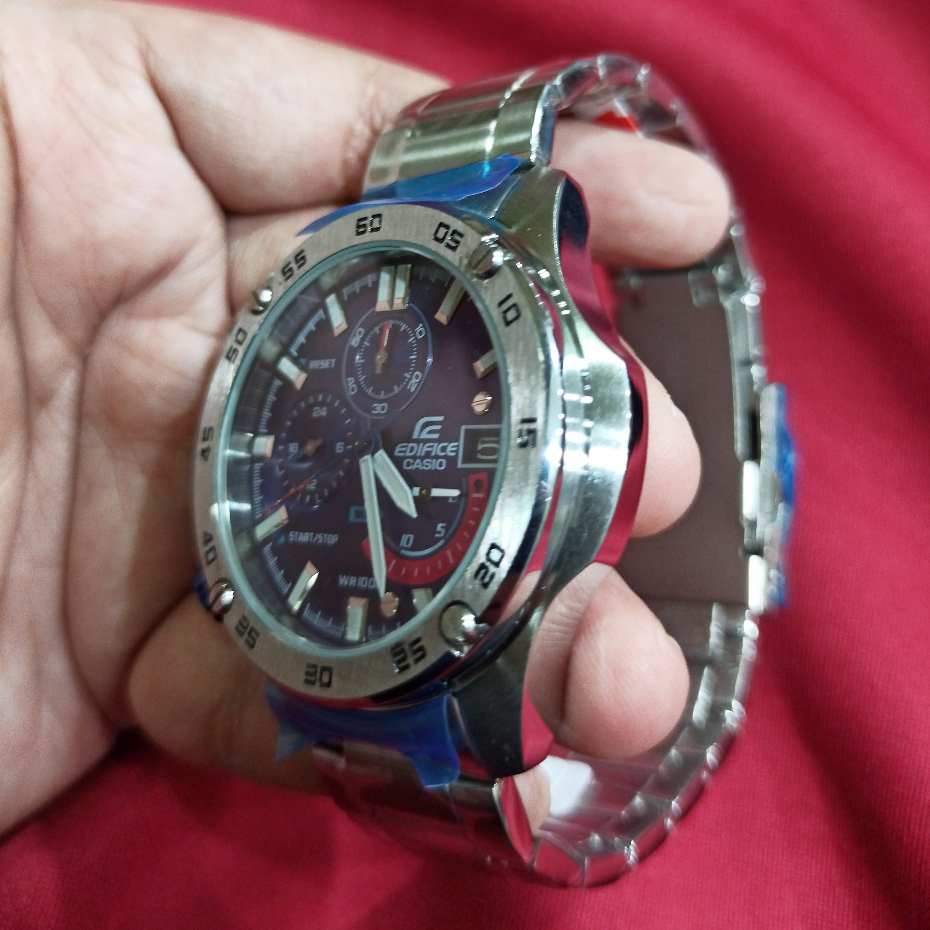 TERLARIS Jam Tangan Pria C*s*o ED*F*C* EFR-558D-2A EFR-558 Chronograph Blue Dial Silver Steel