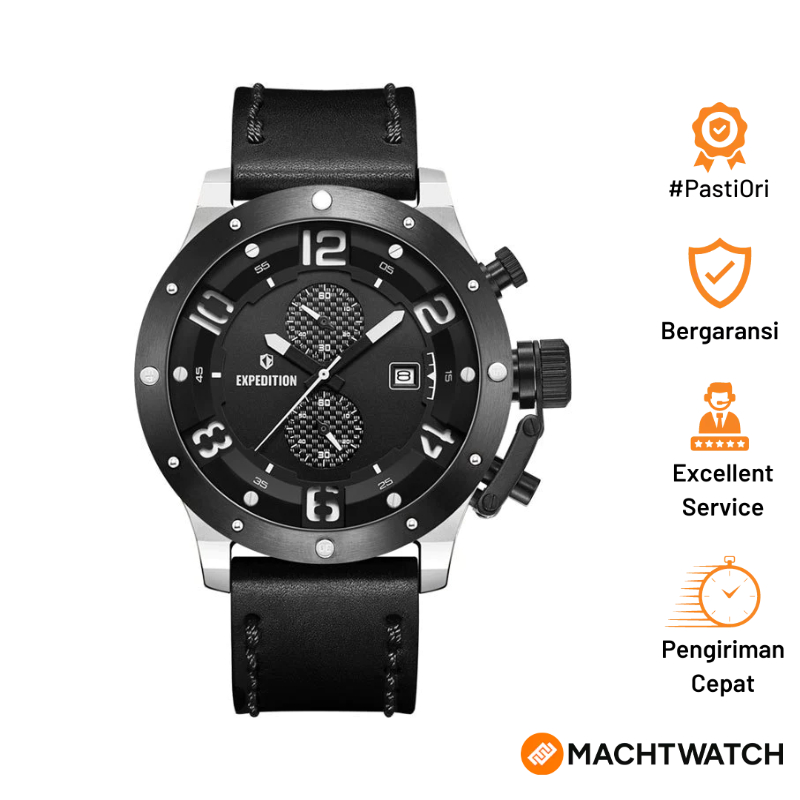 TERLARIS Jam Tangan Pria Expedition Chronograph E 6381 MC LTBBA-1 Men Black Dial Black Leather Strap
