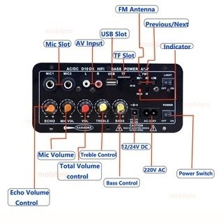 10 inci 5inci Amplifier Board Karaoke Audio Bluetooth USB FM Radio TF Player Subwoofer 30-120W