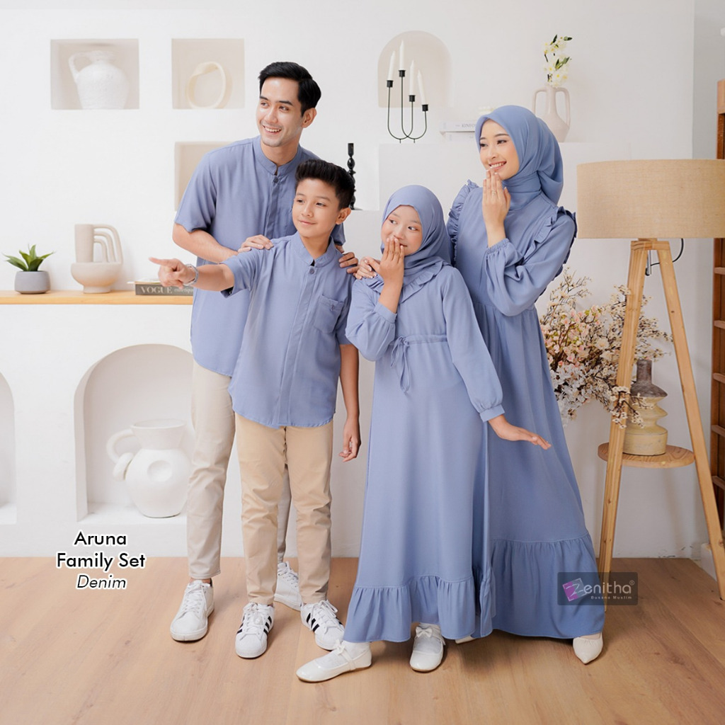 Zenitha - Aruna Denim/Abu Sarimbit Keluarga Lebaran Couple Family Set Premium