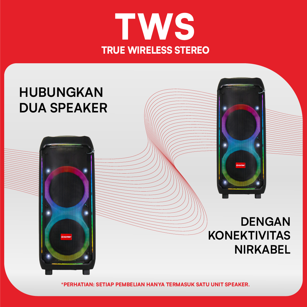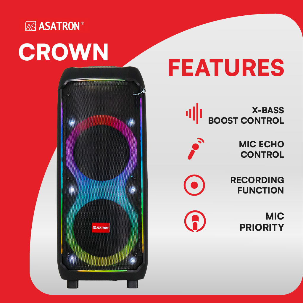 Asatron Crown Dual 10 Inch Bluetooth Party Speaker with 2 Wireless Mic