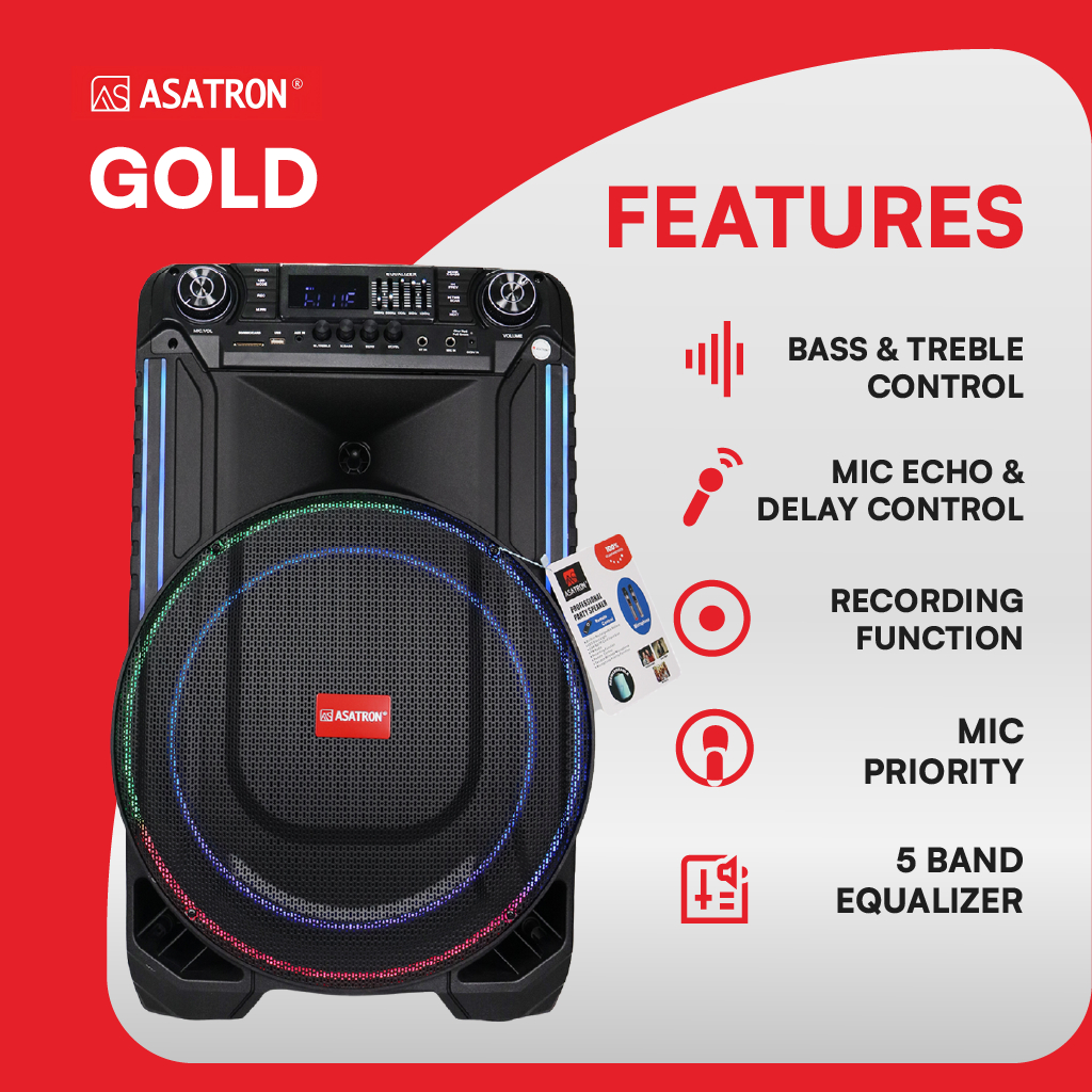 Asatron Gold 15 Inch Bluetooth Karaoke Party Speaker with Wireless Mic TWS