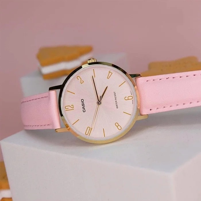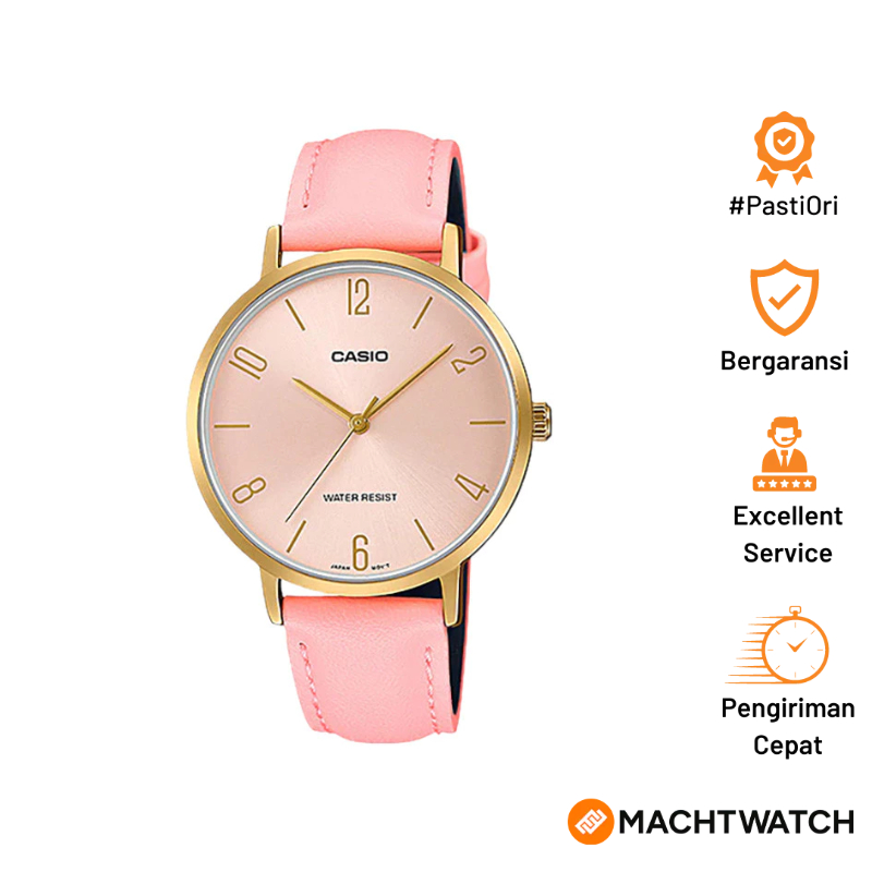 TERLARIS [NOVEMBERIA] Jam Tangan Wanita Casio General LTP-VT01GL-4BUDF LTPVT01 LTP-VT01GL Light Pink Dial Light Pink Lea