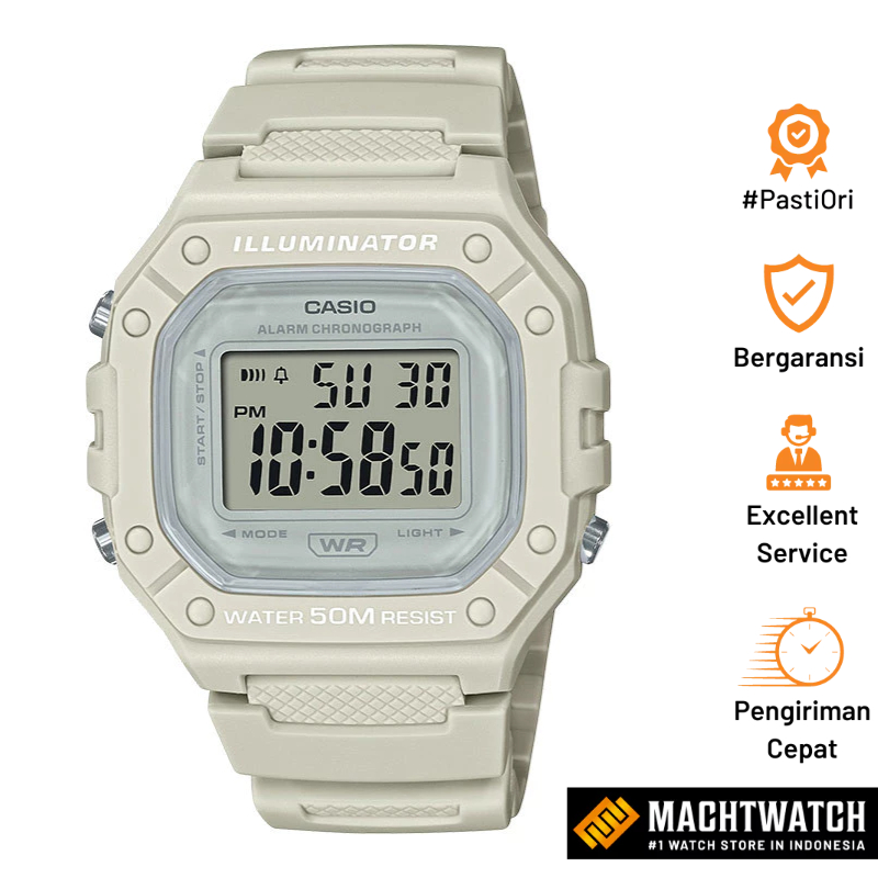 TERLARIS Jam Tangan Unisex Digital Casio Standard W-218HC-8AVDF W218 W-218H Illuminator White Resin Band