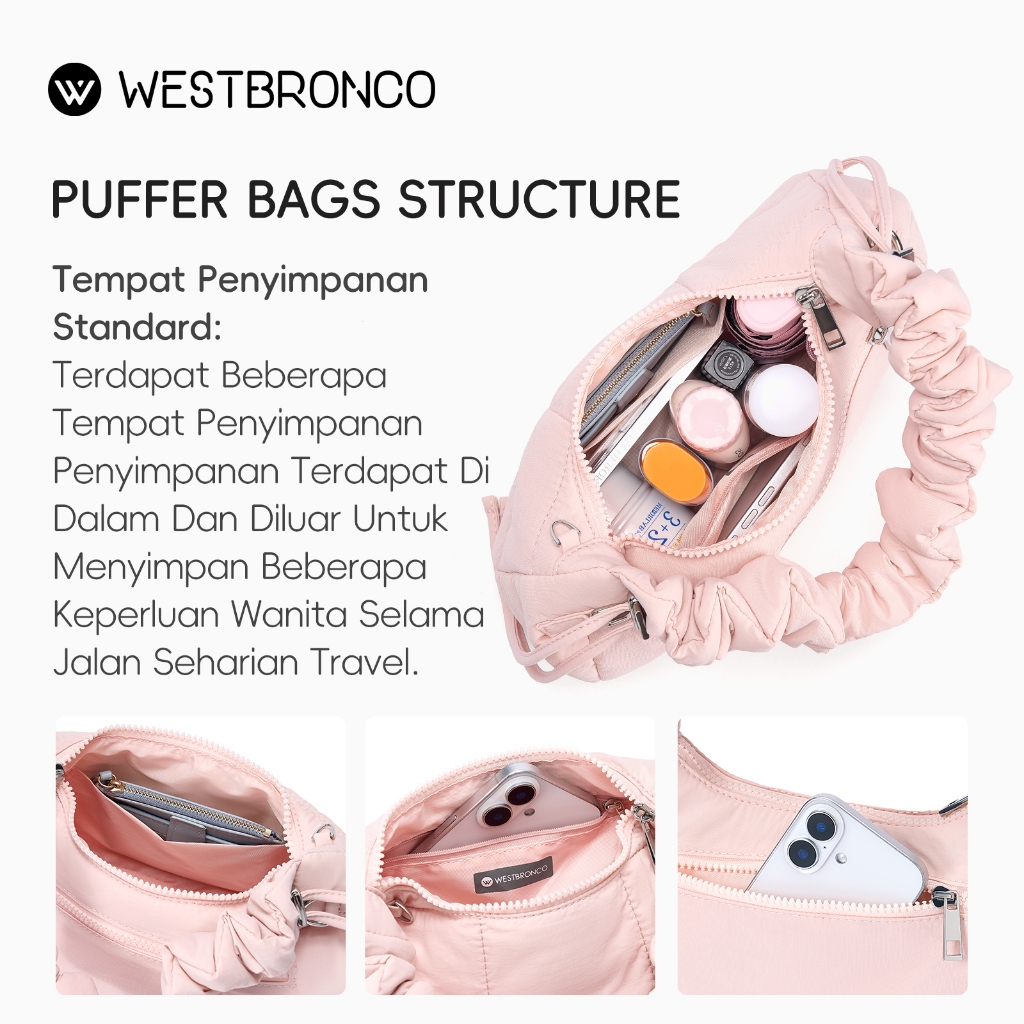 WESTBRONCO [PUFFER TAVIE BAG] Handbag, Tas Bahu, Tali Serut Adjustable, Sling Bag, Multifungsi, Kasual & Modis
