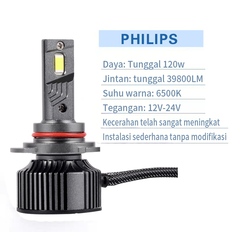 Lampu Depan Philips Versi Super Terang Asli Lampu Depan LED 120W Bohlam Lampu Putih H1 H4 H7 HB3 HB4 HIR2 H11 Lampu Kabu