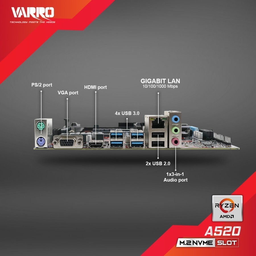 (Gratis Ongkir) MOBO MOTHERBOARD VARRO A520 AMD AM4 SERIES DDR4
