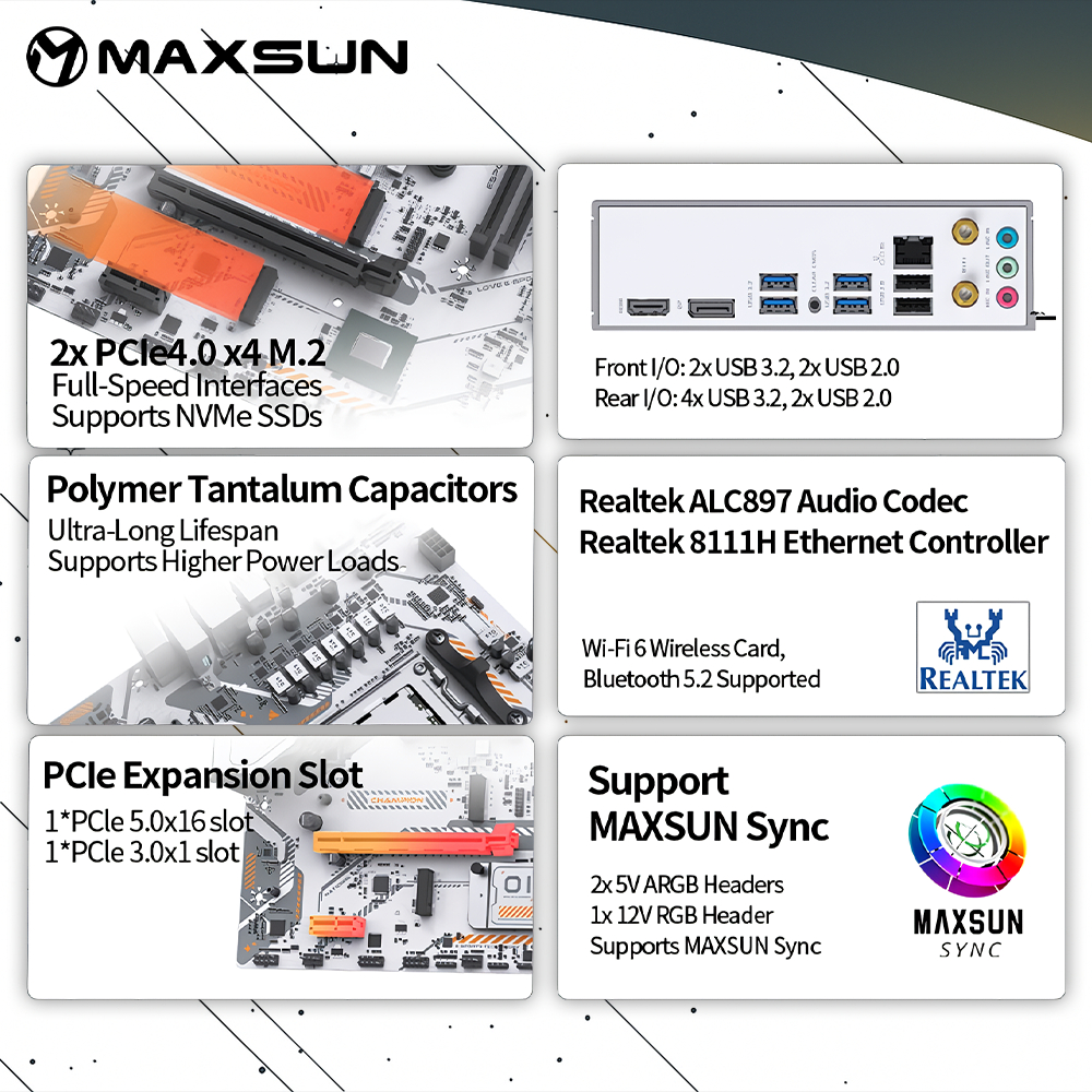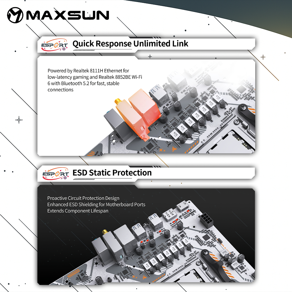 (Gratis Ongkir) MAXSUN eSport B650M WIFI6 ICE mATX Motherboard AMD AM5 DDR5 KYO Group Motherboard AMD AM5 DDR5
