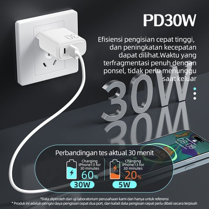 Murah KIVEE Charger iphone fast charging 30w kepala charger type c Quick 4.0 for iphone OFFO xiaomi etc. Keren
