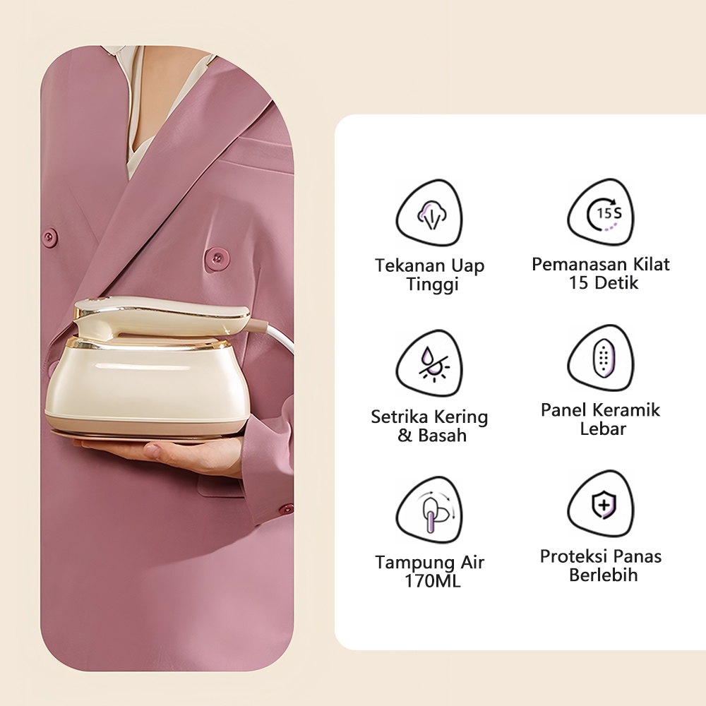 JVJH Setrika Uap Upgraded 2 in 1 Multifungsi Portable Steam Iron Handheld Setrika Mini Traveling Dry/Wet Ironing
