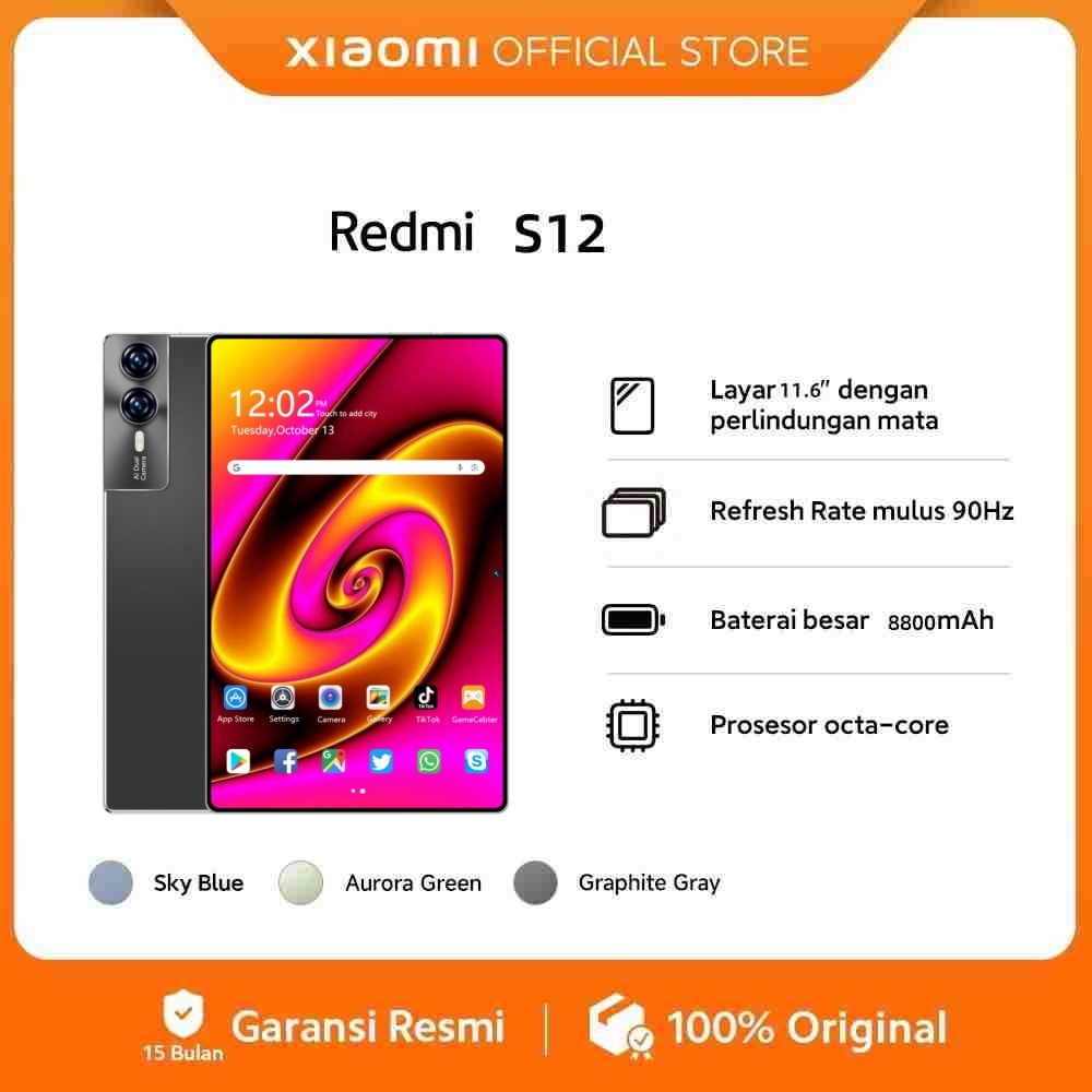 [Free Mouse Keyboard ] Xiaomi Tablet S12 | IPS 11.6" | 16GB+1024GB Murah Tablet Android 5G Tab Dual SIM Wifi Menonton Film dan Belajar Hiburan Kapasitas baterai besar 8800 mAh