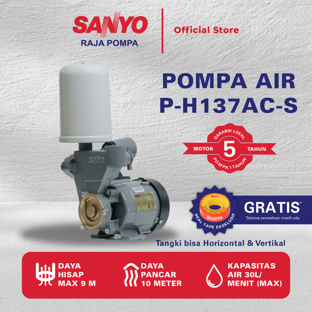 mall inline badgeSANYO Mesin Pompa Air Sumur Otomatis- P-H137AC-S Horizontal & Vertikal