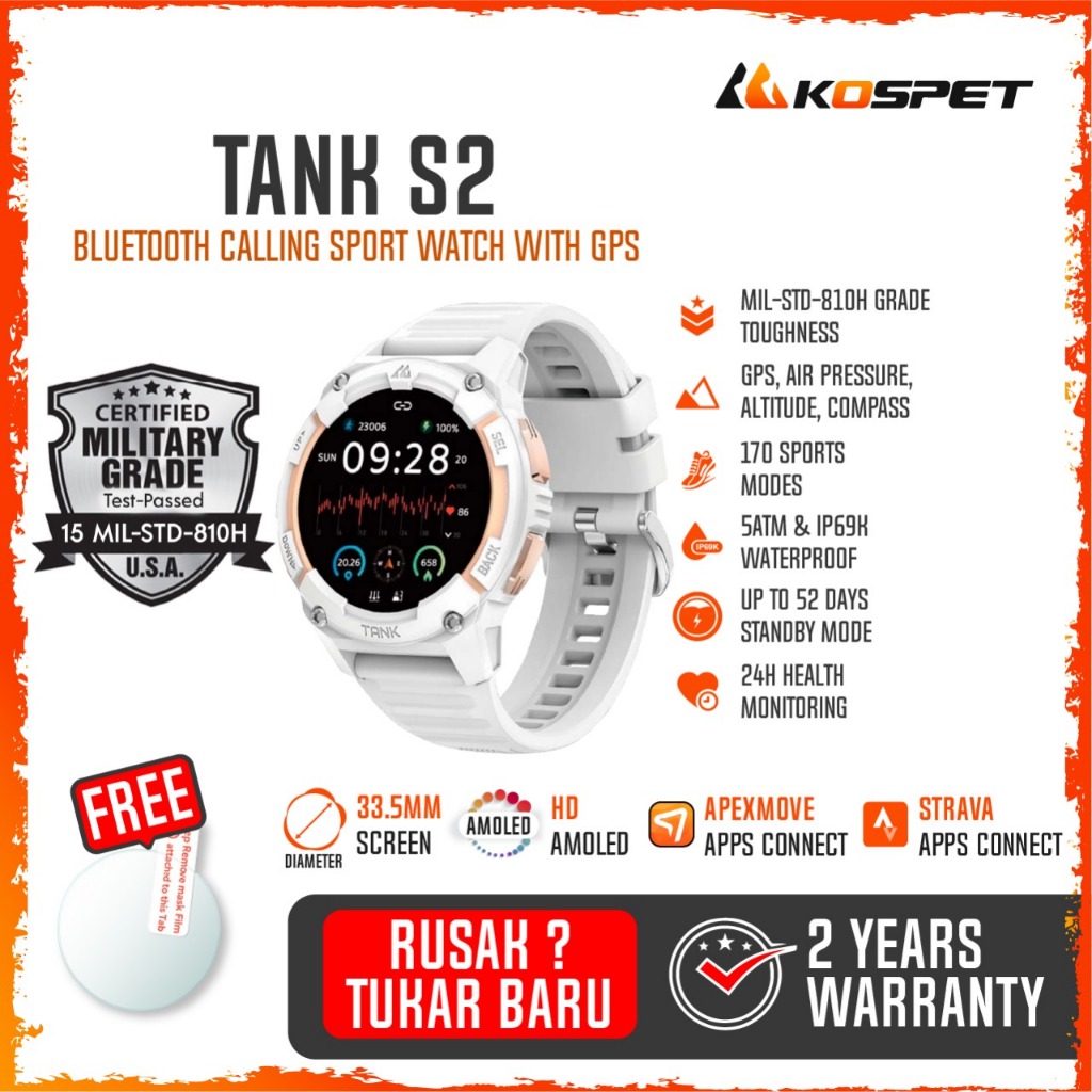 Smartwatch Kospet Tank S2 US 15 Military Grade Rugged GPS 1.32" Amoled 170+ Sports Modes Strava Support