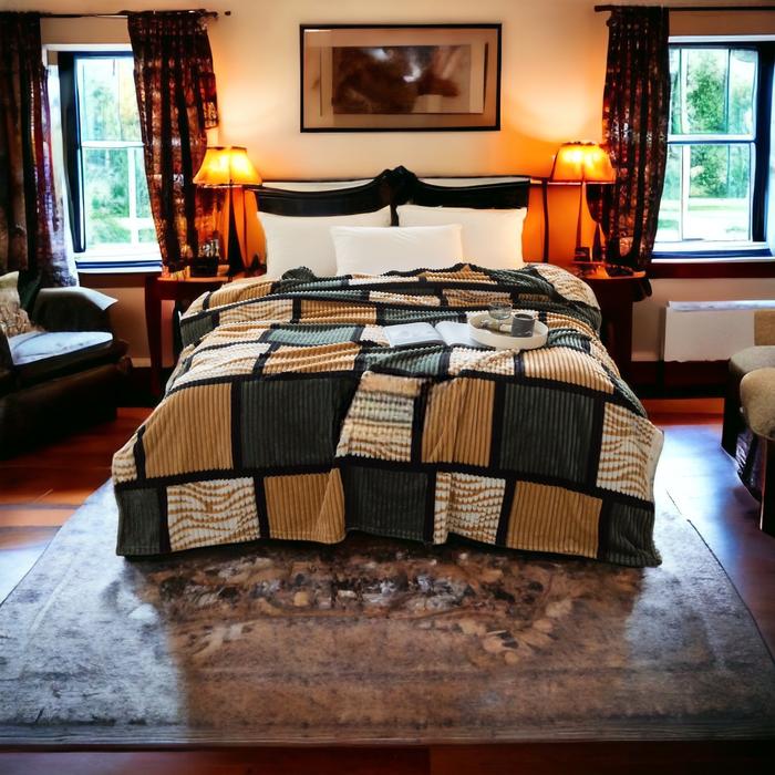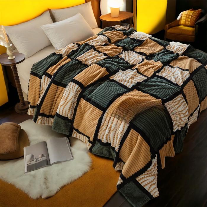 Murah Selimut Bulu Halus Ukuran 180x200 Embos salur motif Kotak Orange Berkualitas Kado Kain Keren