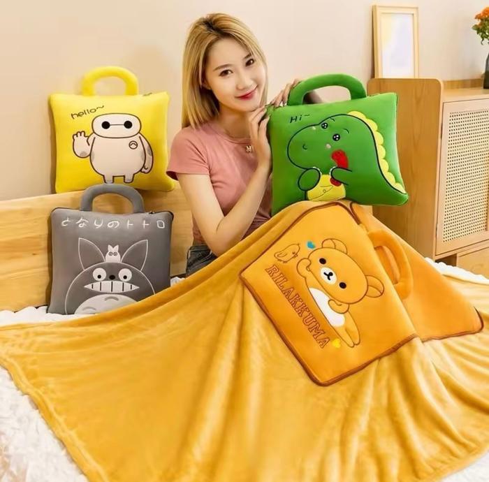 Terlaris Bantal Selimut Karakter Bahan Halus dan Adem Bantal tidur Multifungsi Selimut Lipat - unicorn pink Keren