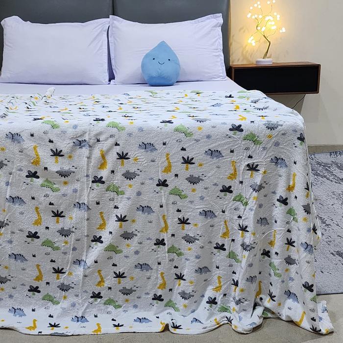 Promo King Rabbit Thermal Blanket / Selimut lembut uk 150x200 cm - Little Dino White Keren