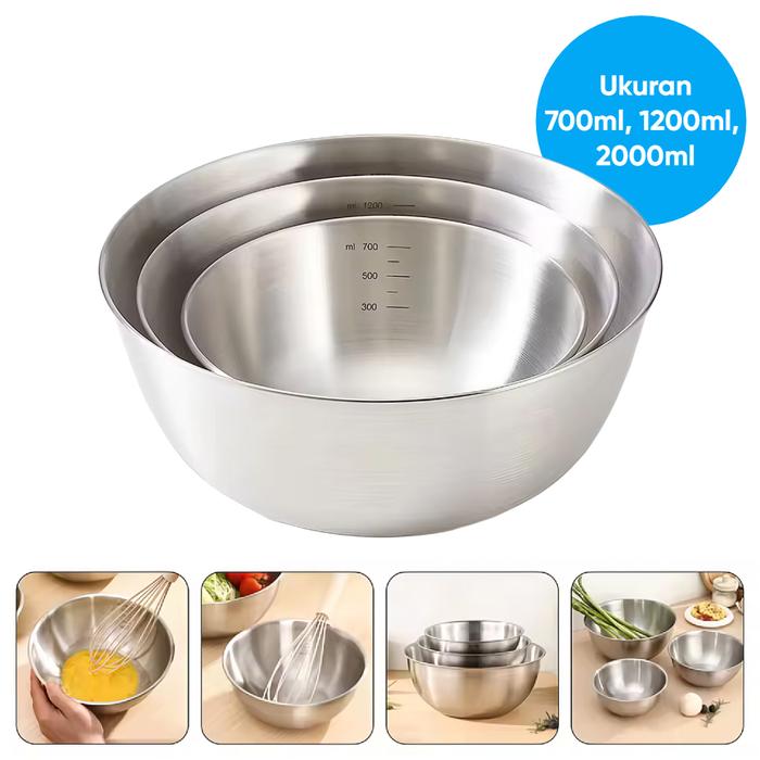 Promo Baskom Mangkuk Stainless Steel 700ml 1200ml 2000ml Mangkok Wadah Adonan Kue Serbaguna - 700ml Keren