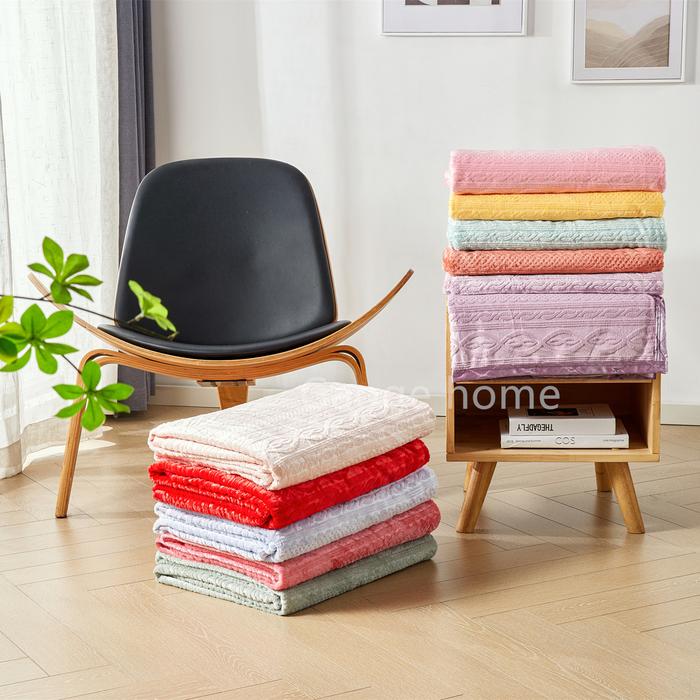 Terlaris Selimut Bulu Dewasa Size 180x200 cm Emboss 3D Pinggiran Full List - peach red Elegan