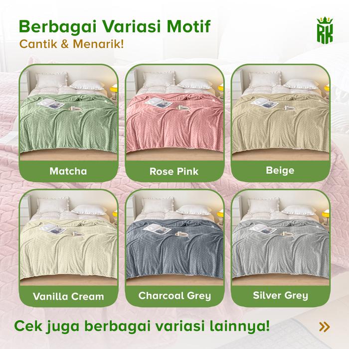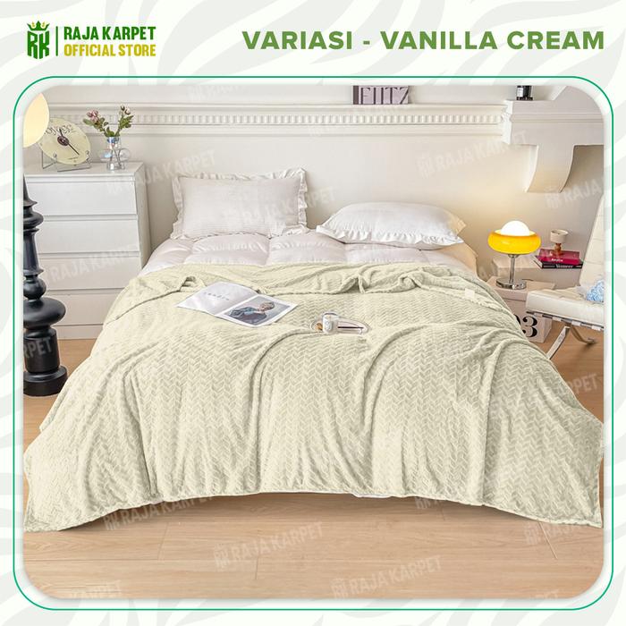 Murah RAJA x INEM - Selimut Bulu Microtex Halus & Lembut Estetik Tekstur Emboss Kawaii - Vanila Cream Keren