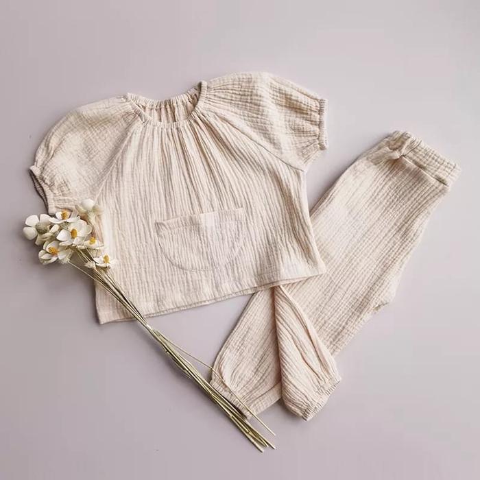Promo SETELAN ANAK PEREMPUAN AMBY Baju Celana Fashion - CREAM 4 Keren