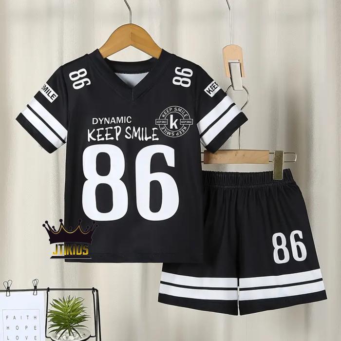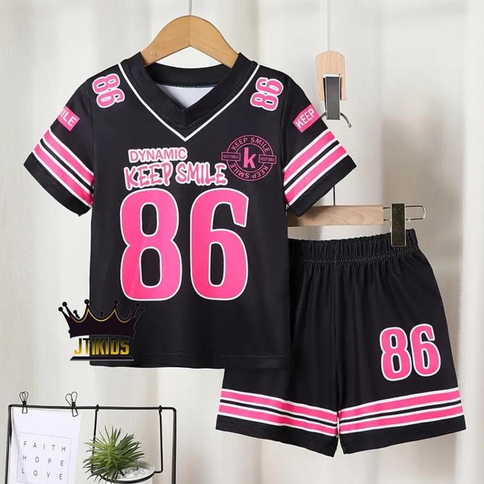 Promo JTKIDS SETELAN ANAK JERSEY VIRAL UNISEX DYNAMIC 86 SNI - 86 PINK+LIST HITAM L Elegan