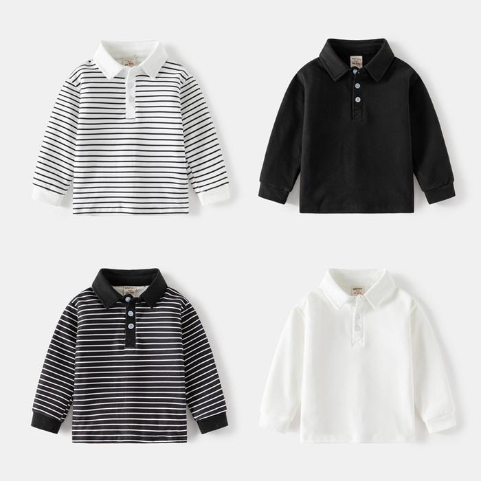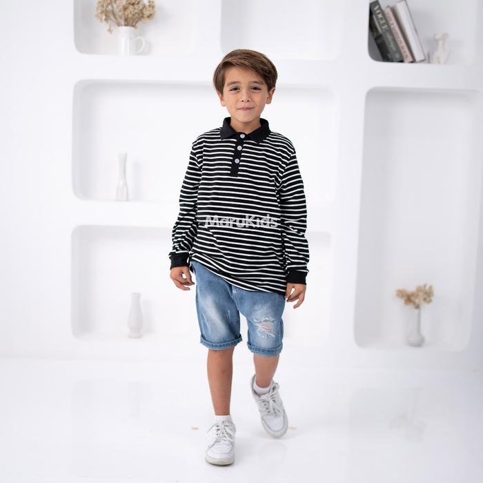 Terlaris MaruKids - Mason Longsleeve Polo Shirt | Atasan kaos polo anak laki-laki 1-8 tahun - White Stripes 90 Keren