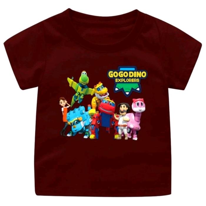 Terlaris Baju Kaos Atasan Anak Cewek cowok GO GO DINO/Atasan kaos anak perempuan usia 1-12Tahun - merah Xs Elegan