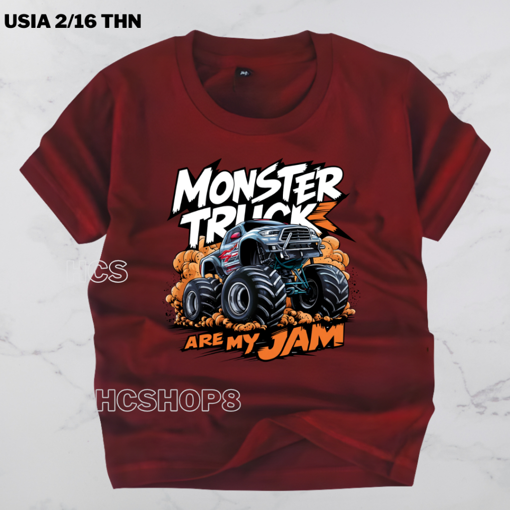 Baju Kaos Anak Kaos Anak Laki Laki Perempuan Monster Truck Usia 2-16 Tahun Ideal Cowok Cewek