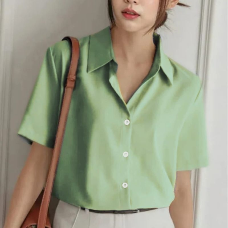 KEMEJA WANITA CASUAL LENGAN PENDEK POLOS SIZE M-XXXL KEMEJA WANITA TERBARU DAN KEKINIAN PROMO GRATIS ONGKOS KIRIM