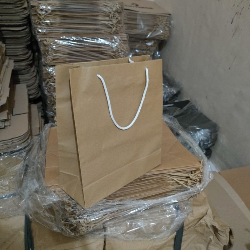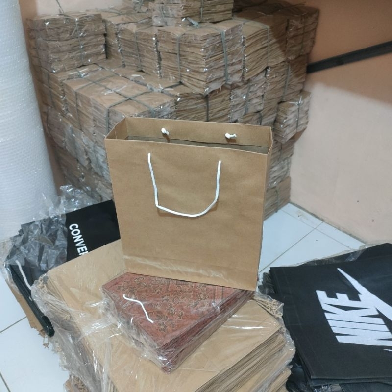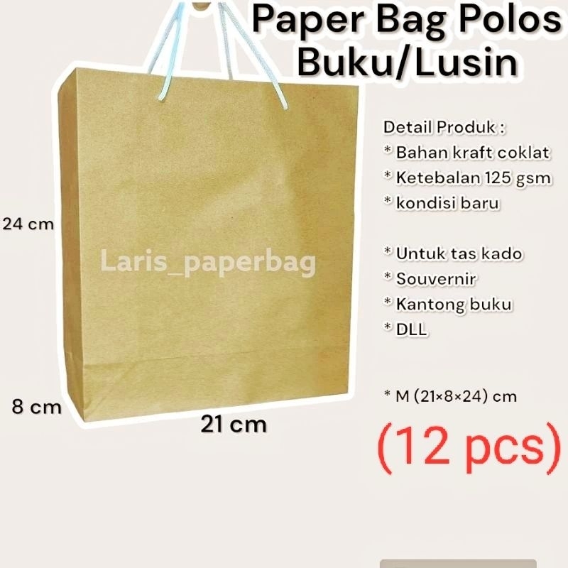 Paper Bag Polos Cokelat Kecil M/Lusin (12 pcs) Ukuran 21×8×24 cm