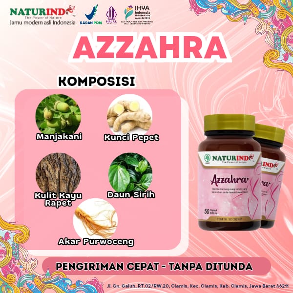 Azzahra Naturindo 50 Kapsul – Obat Herbal Kewanitaan, Atasi Keputihan, Bau Tidak Sedap, Miss V Rapat, Nyeri Haid, Halal