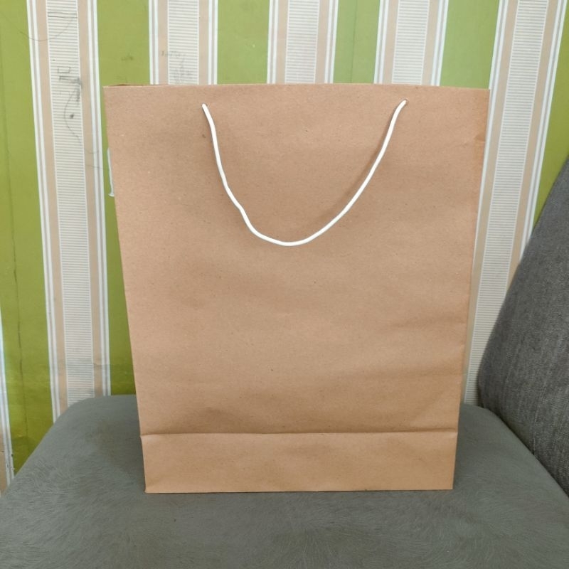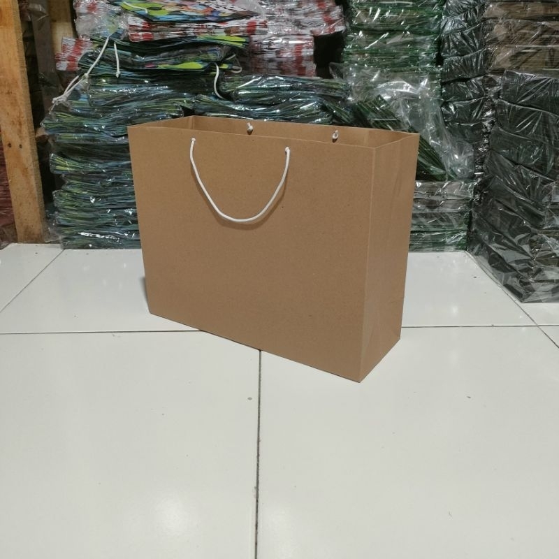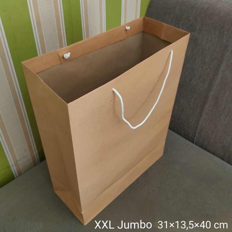 Paper Bag Coklat Polos Extra Jumbo XXL/Lusin Ukuran 31×13,5×40 cm
