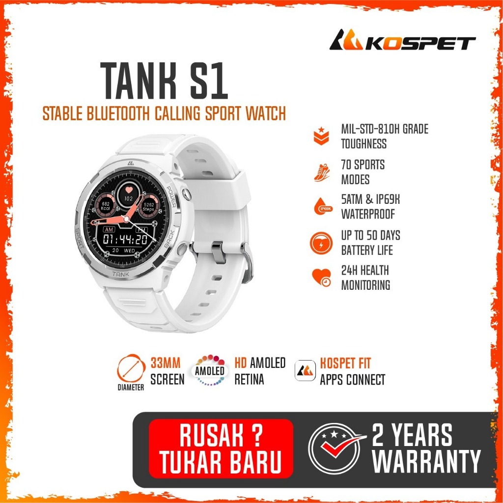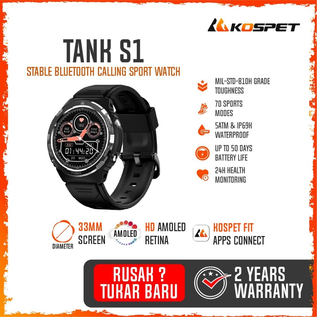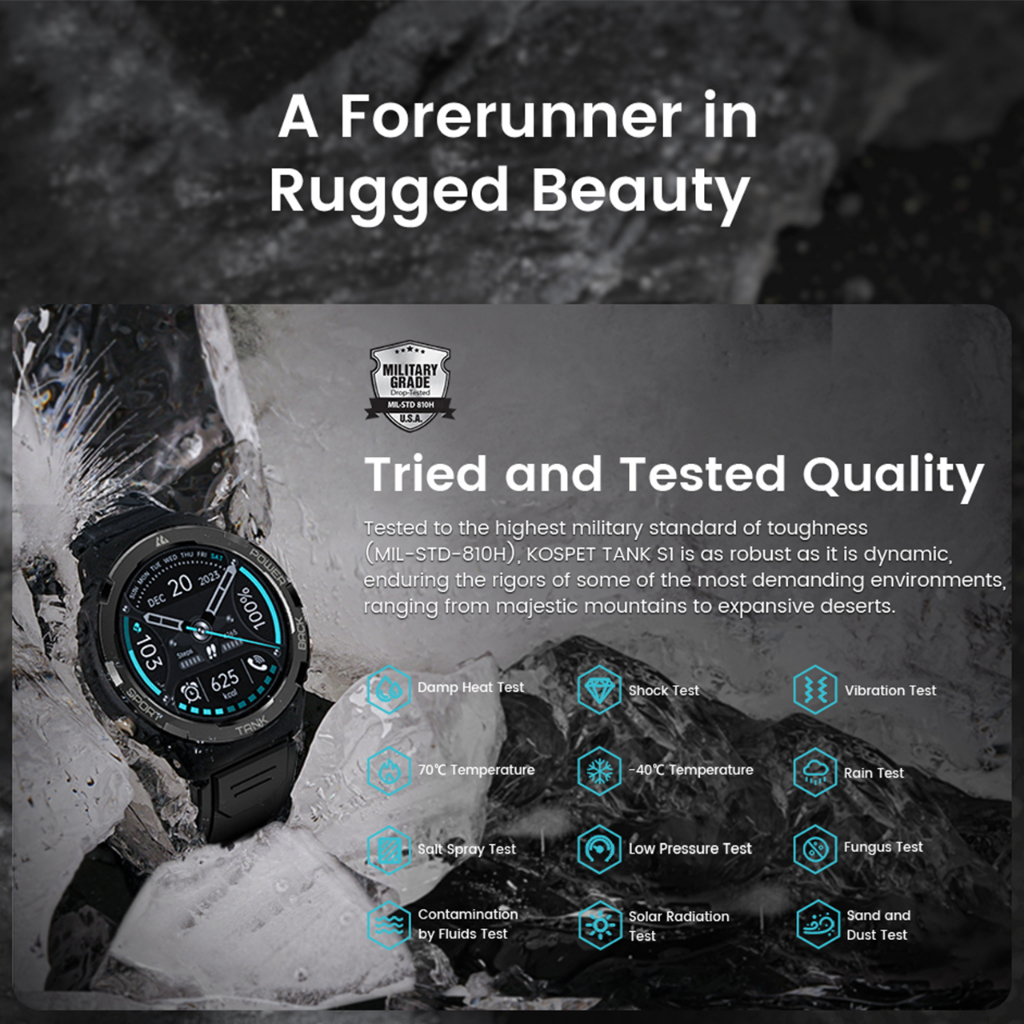 Smartwatch Kospet Tank S1 US 15 Military Grade Rugged GPS 1.32" Amoled 170+ Sports Modes Strava Support