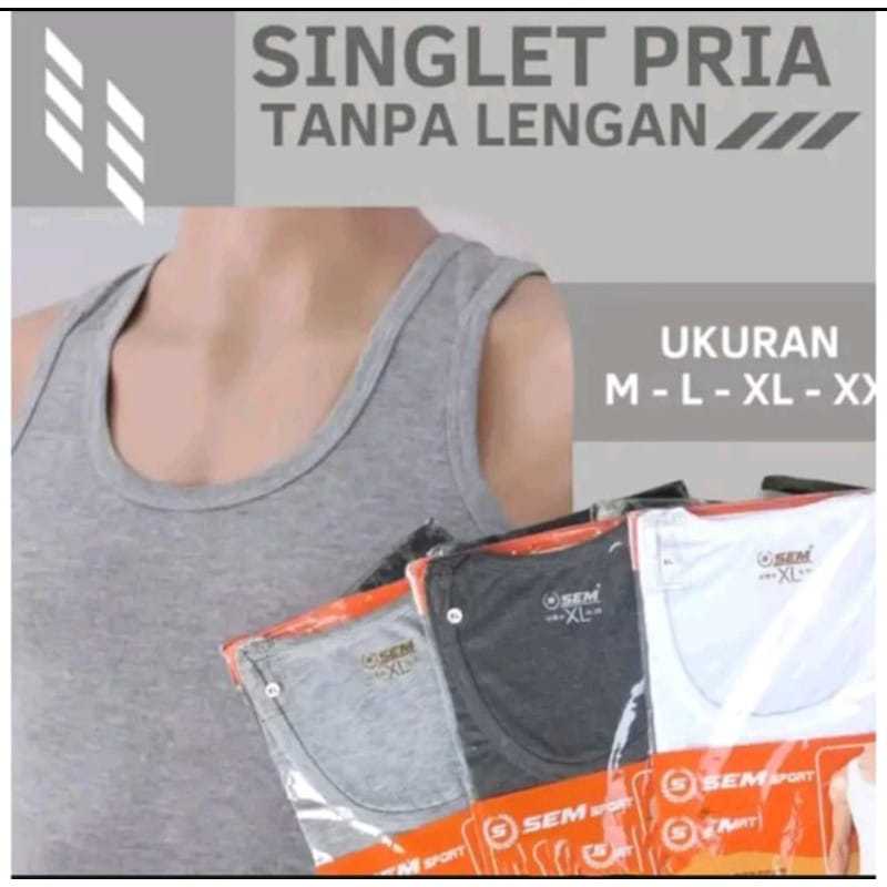 RC Paket Isi 3pcs Kaos Dalam Singlet Pria Dewasa Agree SEM Sport Bahan Katun Warna Hitam Putih Abu