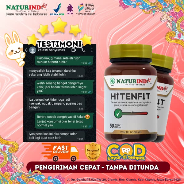 HITENFIT Naturindo 50 Kapsul – Obat Herbal Hipertensi, Penurun Tekanan Darah Tinggi, Aman Halal, Asli BPOM