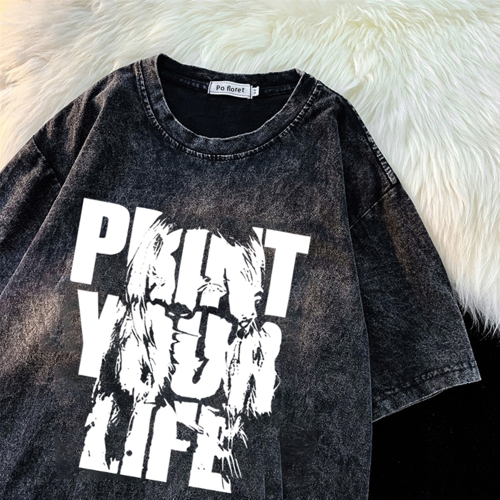 Baju Anak Quiss Kaos lengan pendek katun tebal retro Amerika yang dicuci untuk anak laki-laki dan perempuan desain musim