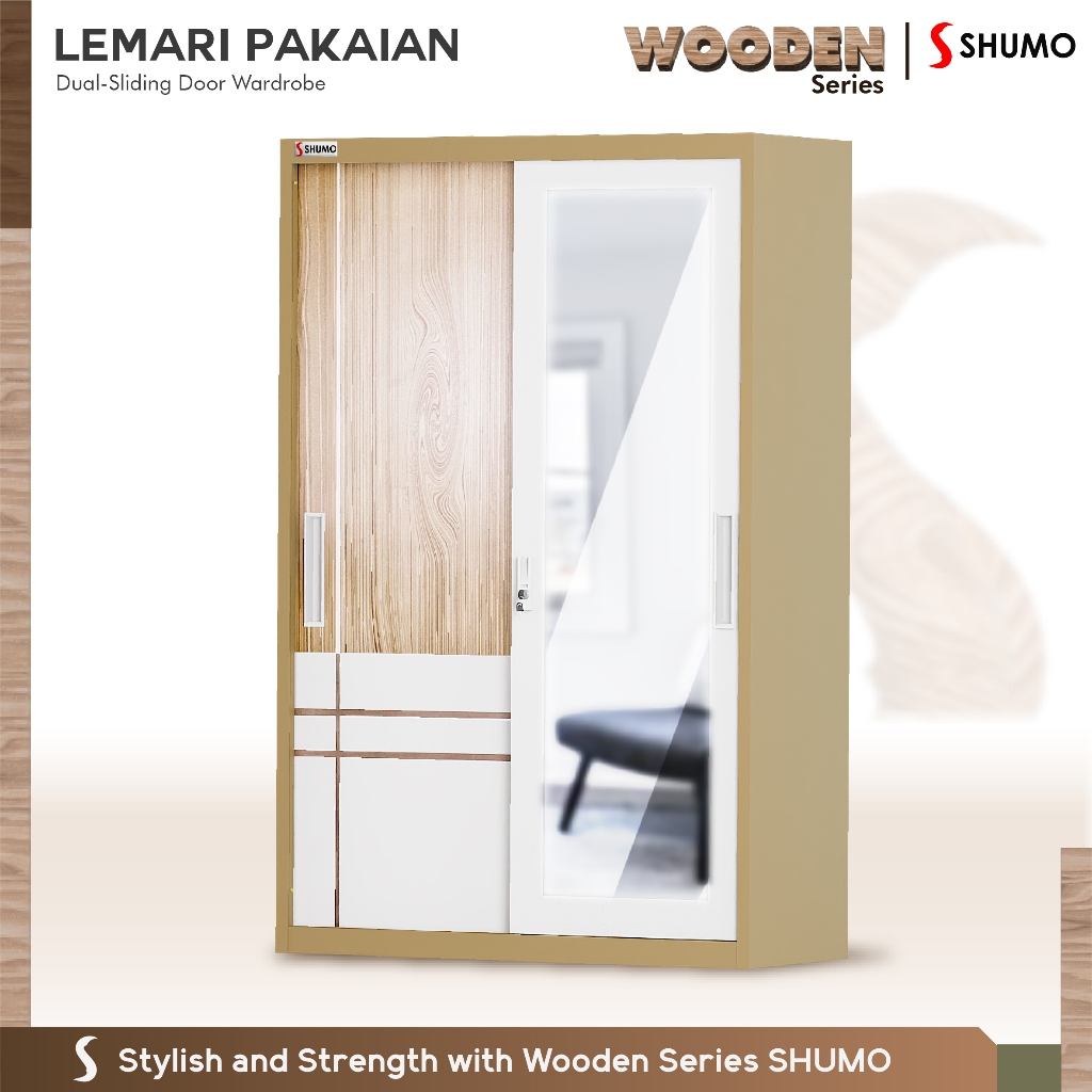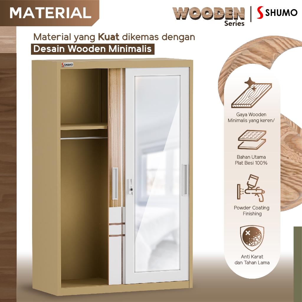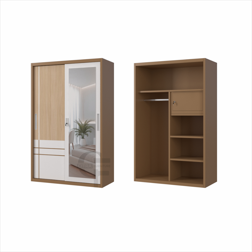 Lemari Pakaian Besi 2 Pintu Sliding Jumbo | Lemari Baju Kaca Wooden Series Citra Furniture SHUMO ® Gratis Ongkir