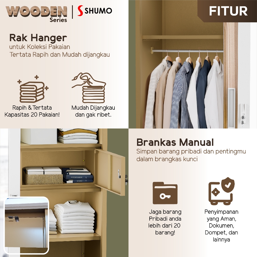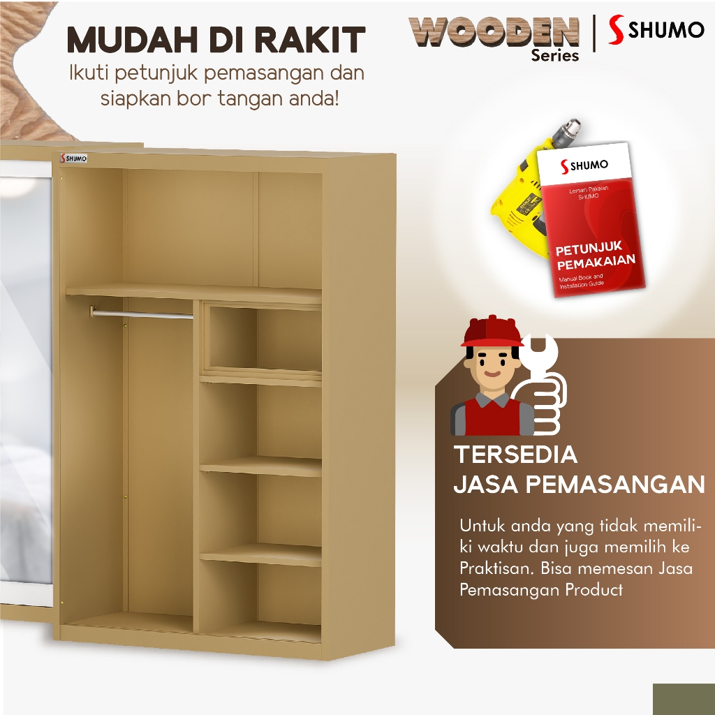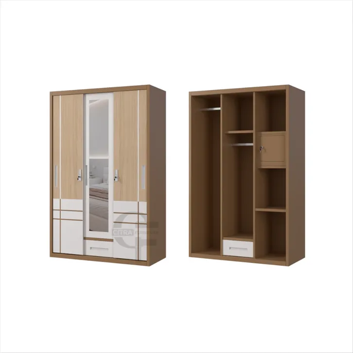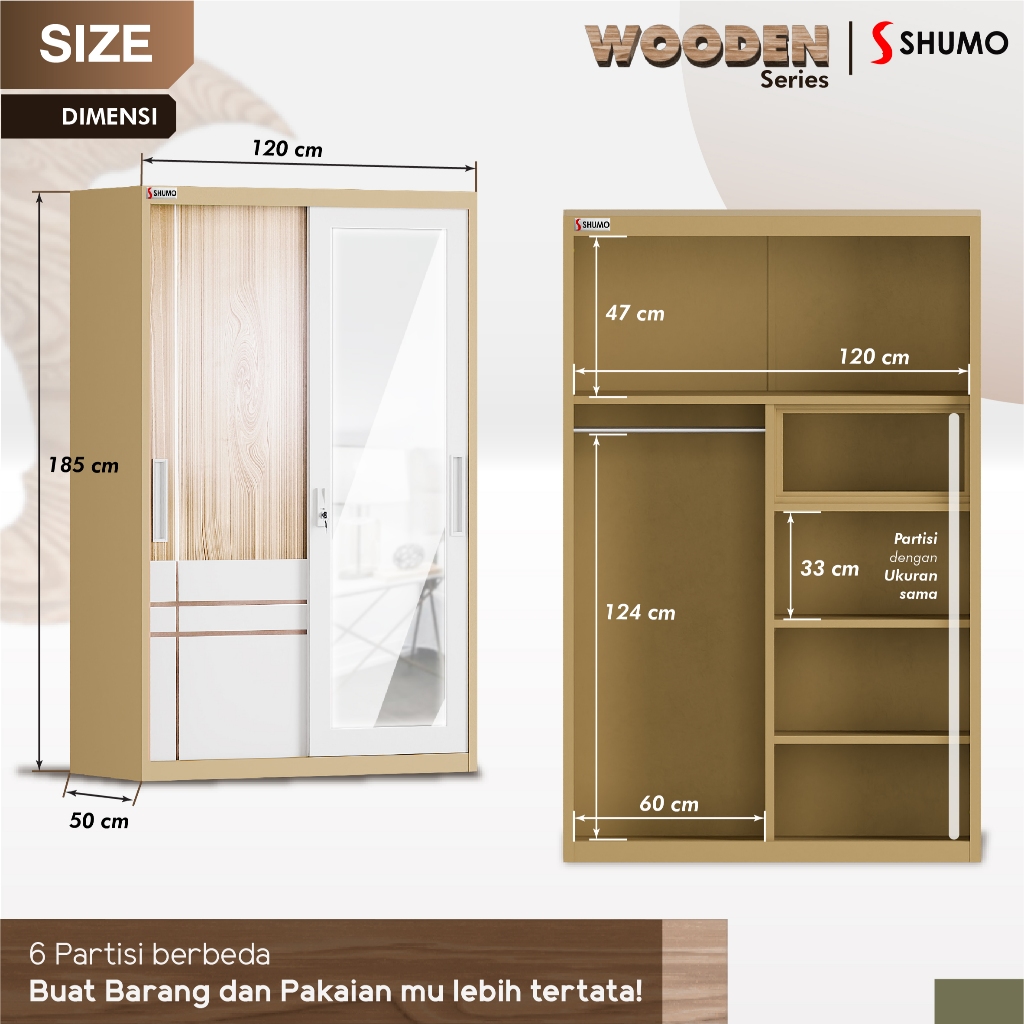 Lemari Pakaian Besi 2 Pintu Sliding Jumbo | Lemari Baju Kaca Wooden Series Citra Furniture SHUMO ® Gratis Ongkir